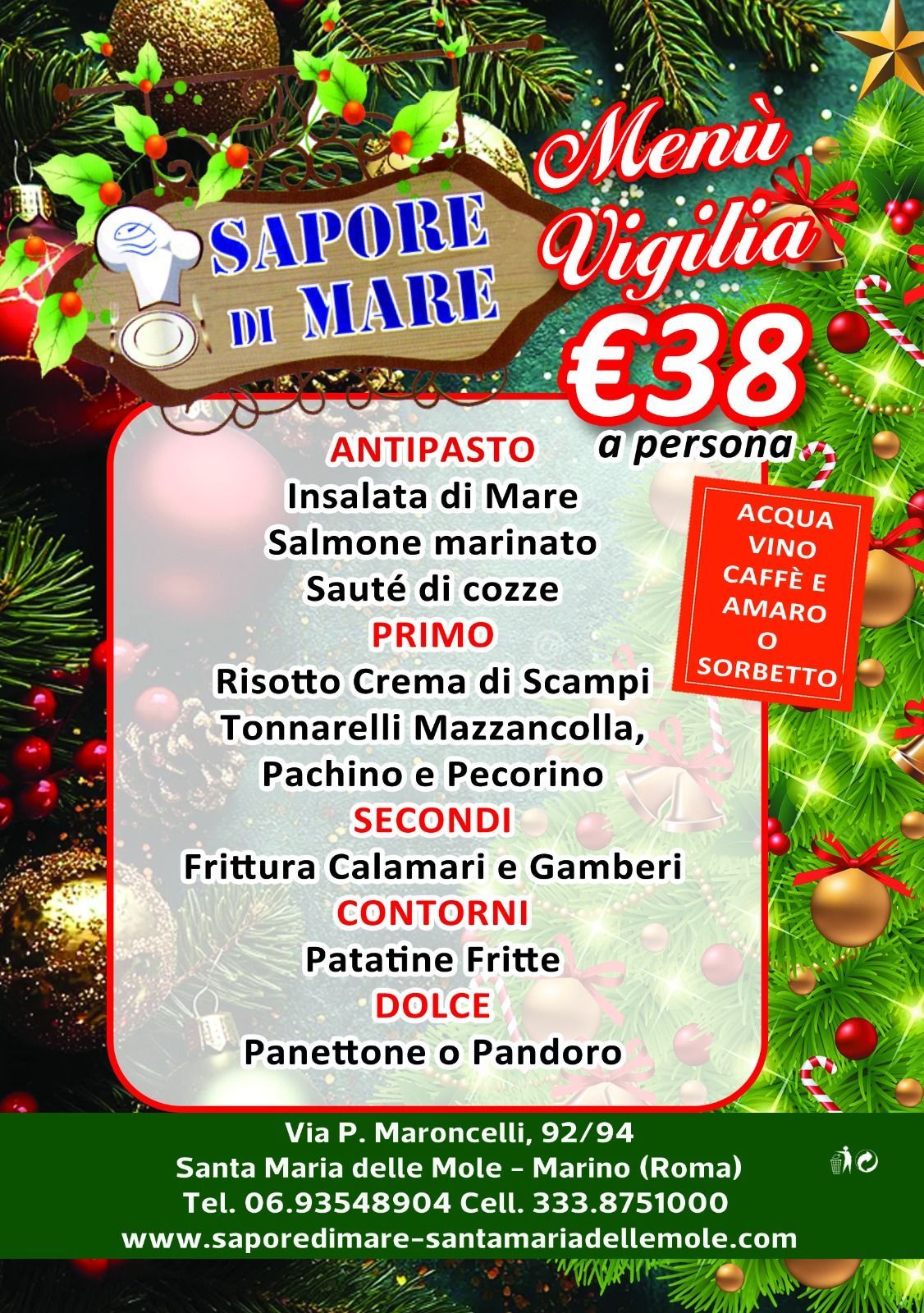 Contatta subito il Ristorante Sapore di Mare e prenota un tavolo per pranzo o cena. Ti aspettiamo.