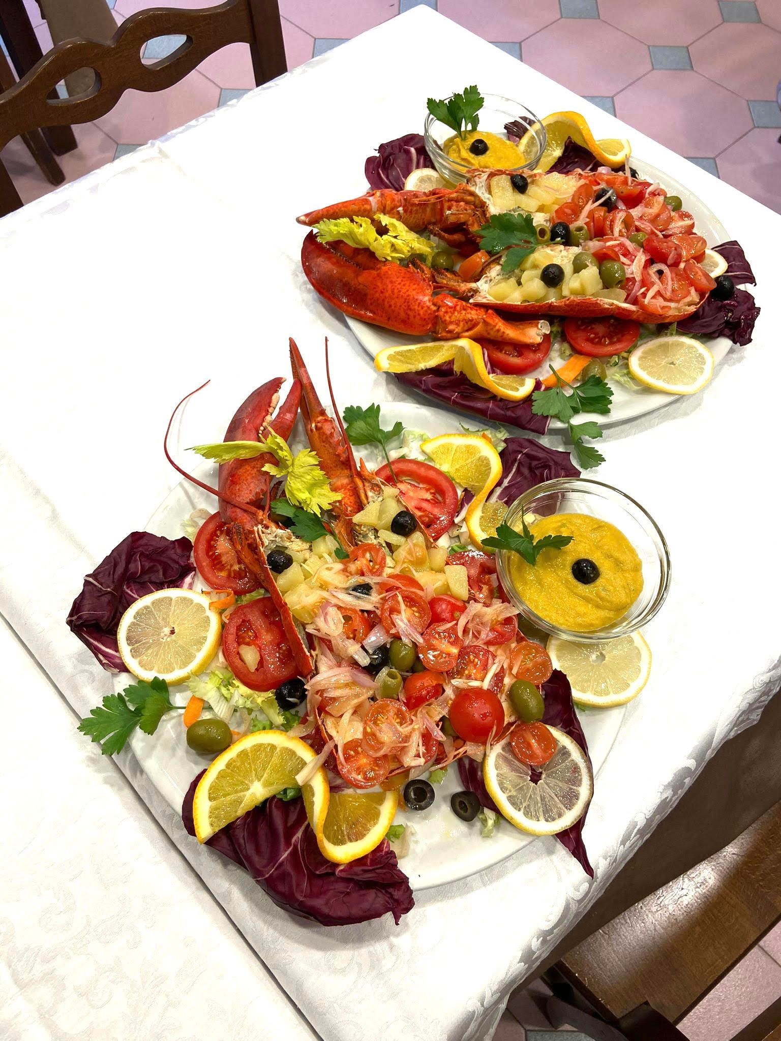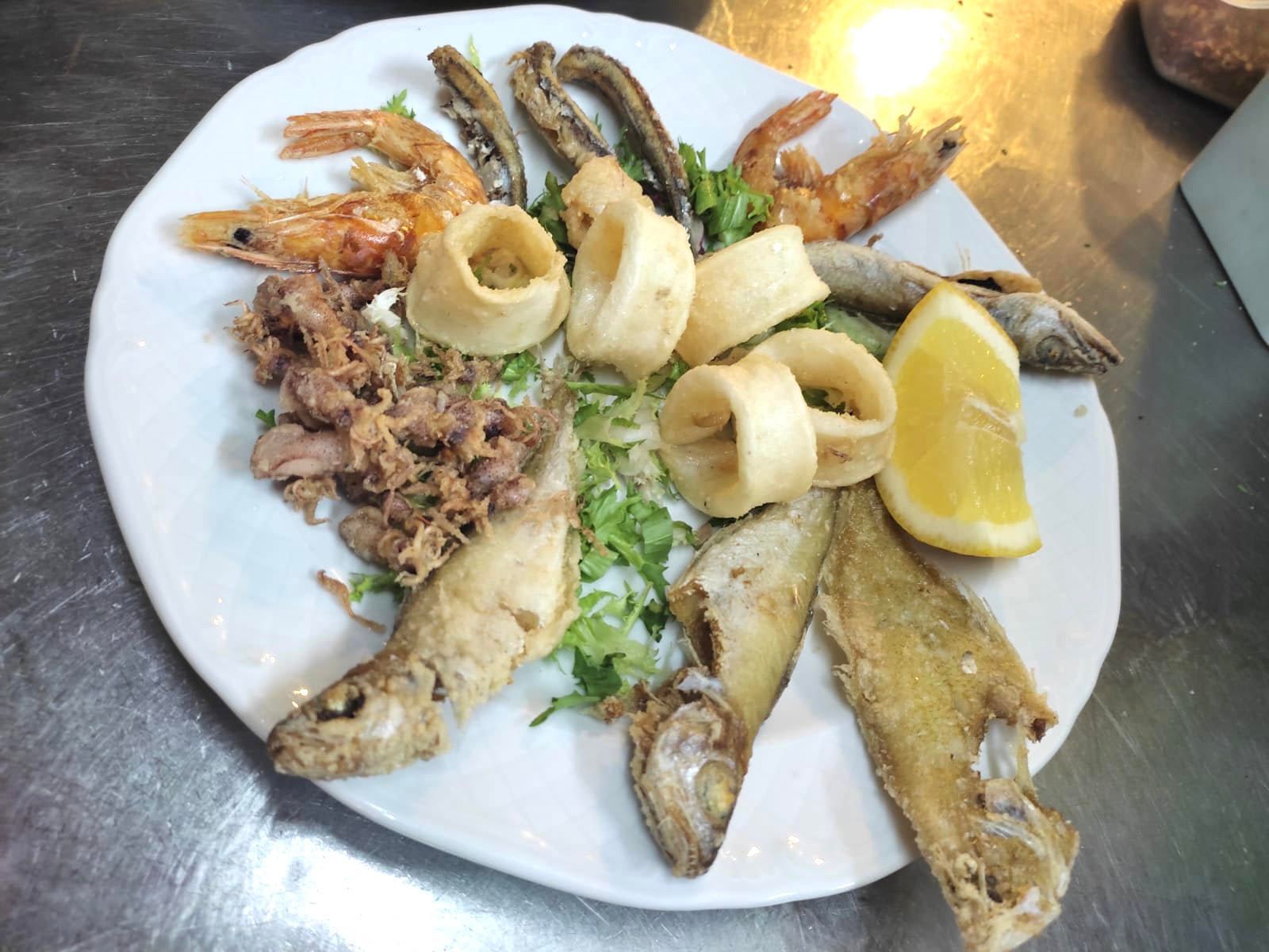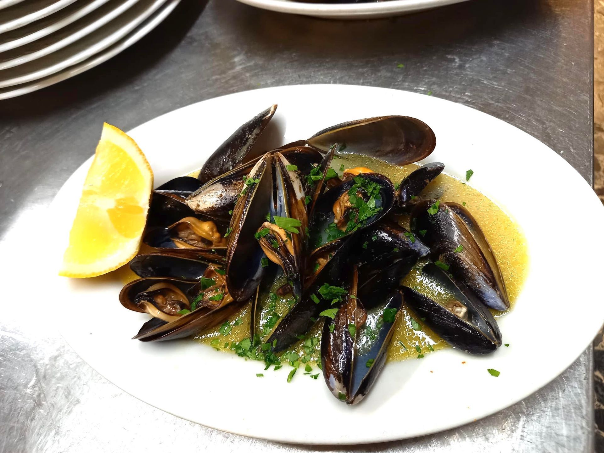 - Antipasto: alici, insalata di mare, cozze, salmone